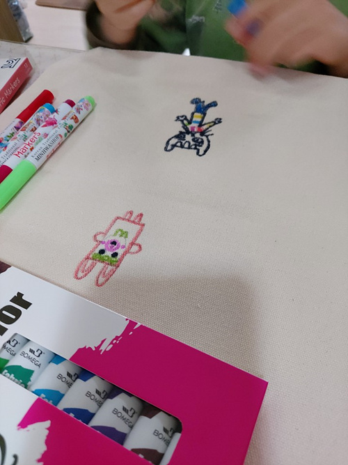 아이 마음대로 그리고 싶은걸 그리고 색칠하고 스스로가 만들어 들고 다닐수 있는 에코백