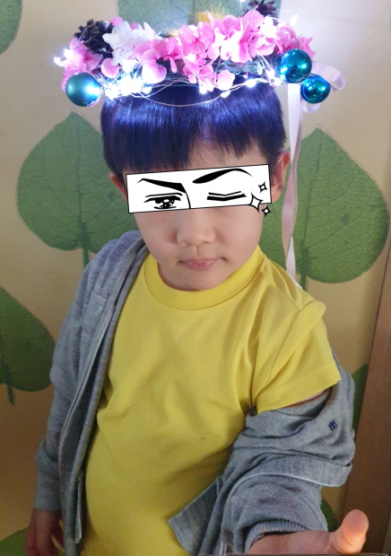 곁에 머물던 아이가 보더니 머리에 씌워 달라고 ㅋㅋㅋㅋㅋ