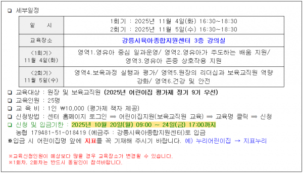 일정 | 2025년 11월 4일 16:30 | 장소 | 강릉시육아종합지원센터 |