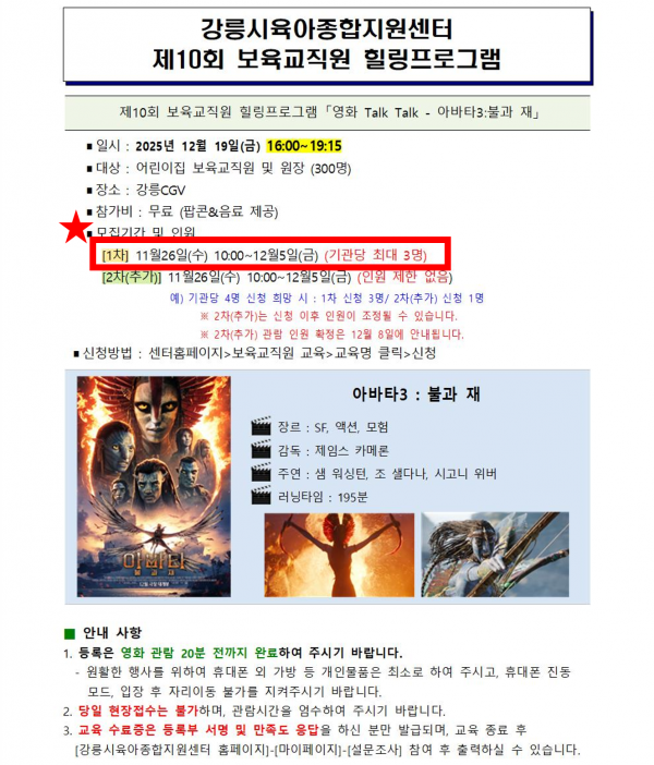 제10회 보육교직원 힐링프로그램 [영화Talk Talk] 아바타3:불과 재 - 1차
