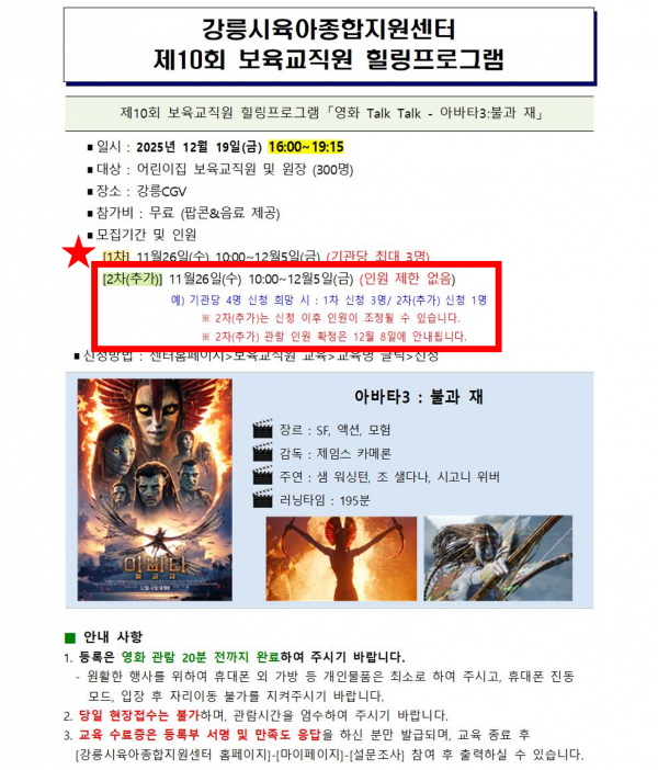 제10회 보육교직원 힐링프로그램 [영화Talk Talk] 아바타3:불과 재 - 2차(추가)