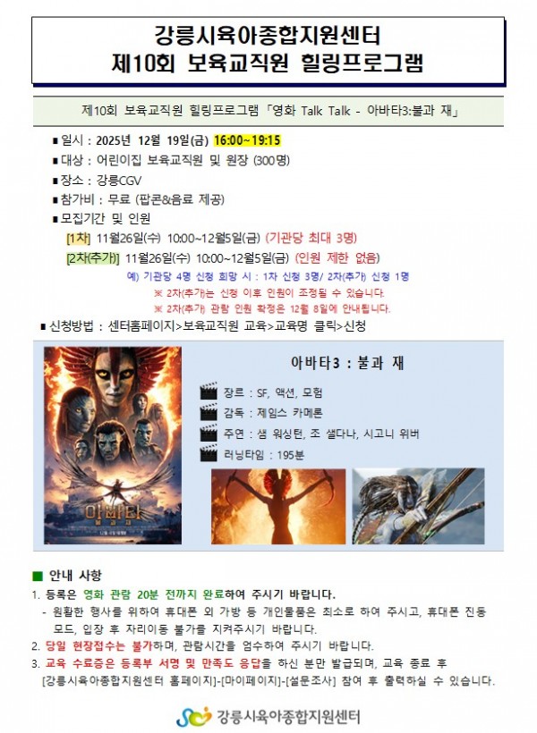 제10회 보육교직원 힐링프로그램 [영화Talk Talk] 아바타3:불과 재 -차량동승자