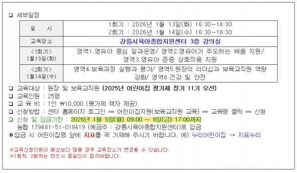 | 일정 | 2026년 1월 13일 16:30 | 장소 | 강릉시육아종합지원센터 |