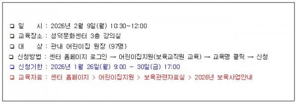 | 일정 | 2026년 2월 9일 10:30 | 장소 | 성덕문화센터 3층 |