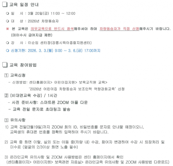 2026년 어린이집 차량동승자 보조인력 역량강화교육