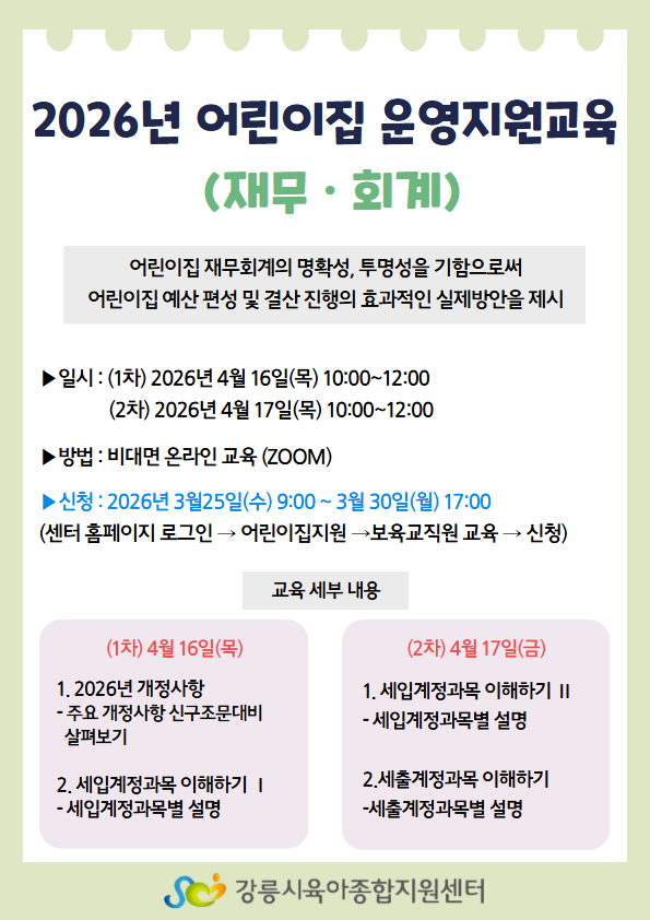 2026년 어린이집 운영지원교육 (재무·회계) ①