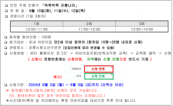 | 일정 | 2024년 9월 12일 10:00 | 장소 | 강릉시청소년수련관 |