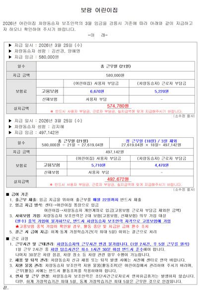 2026년 3월 어린이집 차량동승자 보조인력 임금 지급 안내_보람