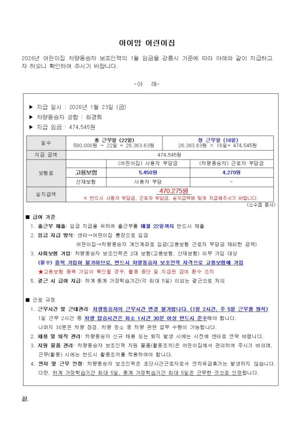 2026년 1월 어린이집 차량동승자 보조인력 임금 지급 안내_아이맘