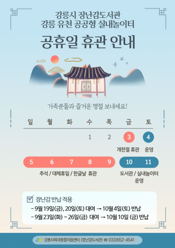 강릉시 장난감도서관 및 유천 공공형 실내놀이터 휴관 안내
