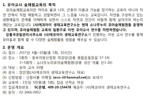 붙임_유아교사_숲체험교육_연수_안내문_및_신청서.hwp