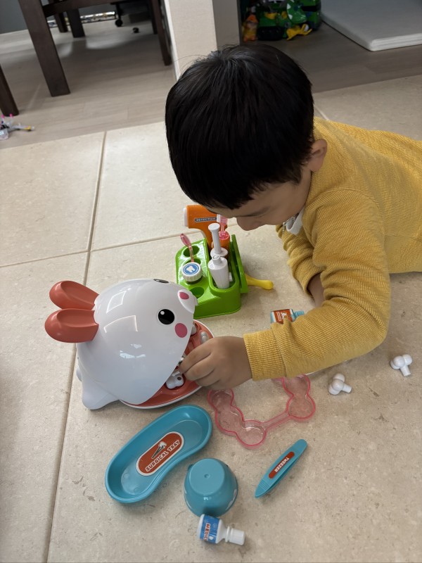 치과놀이에 푹 빠졌답니다. 사탕먹은 치아를 당근을 먹여 치료해주고 식습관도 개선하는데 도움이 되네요